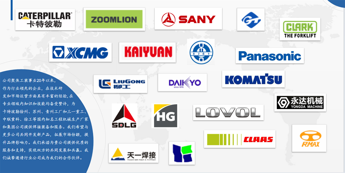 公司成立于2000年,注冊資本1000余萬元,生產面積約10000平?,F有員工50余人,專業工裝設計師15人。公司設運營管理部、制造部、技術質量部職能管理部門,是集ISO質量環境管理體系、安全標準化企業為一體的高新技術創新企業。 公司主要從事工程機械制造、焊接工裝、焊接變位機、智能加工中心夾具、工業機器人為核心的非標工裝、變位機、智能拼點、生產線集成配套、裝配線、智能機器人工作站集成服務、非標專機設計制造,為客戶提供一站式整體解決方案和交鑰匙項目。公司聚焦工裝事業20年以來來,專業性強,為卡特彼勒徐州、蘇州、青州工廠和三一重工、中聯重科、徐工等國內知名工程機械生產廠家和集團公司提供焊接裝備和服務,目前已形成年產值3000余萬元的生產能力。